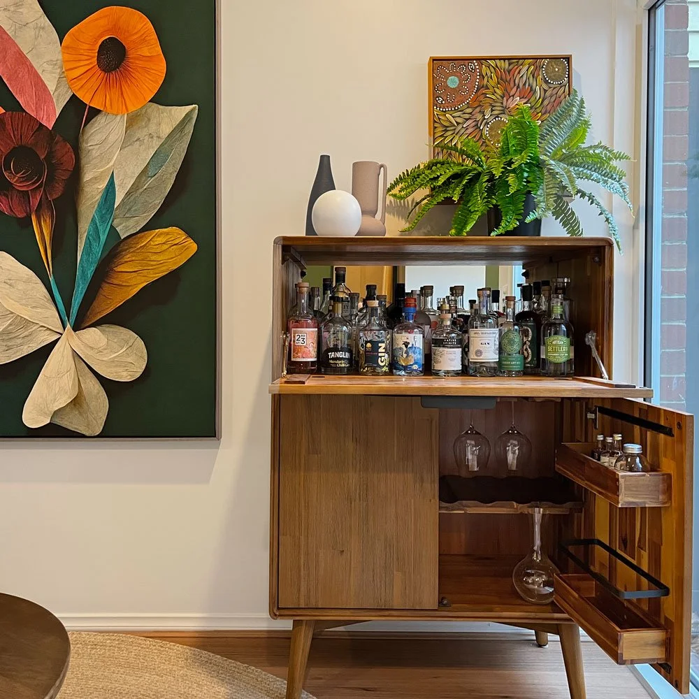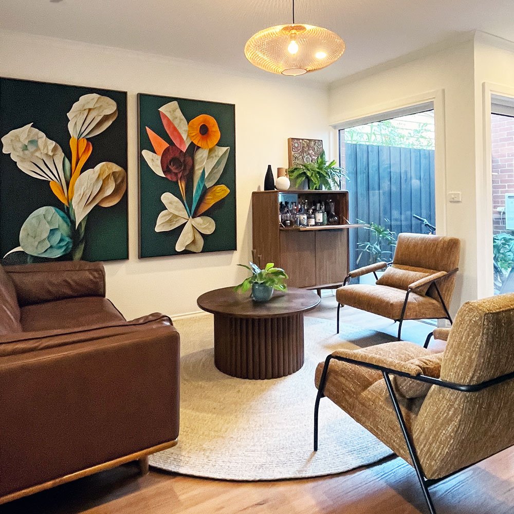 The Brief: A comfy, welcoming room where we can relax or have friends over. Include a bar, comfy seating and some privacy from the street. Cosy but still stylish. Check out our before and after gallery!